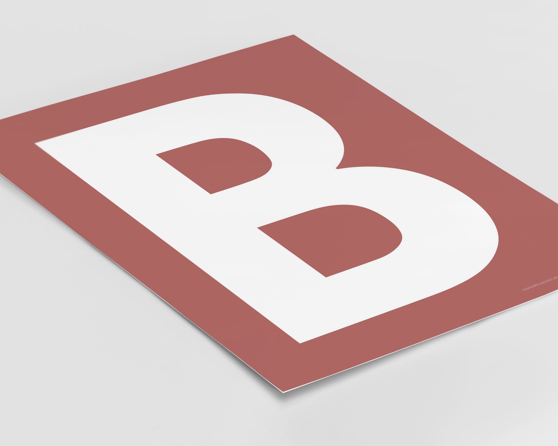 Our Series 3 letter prints feature white typography art on a Nantucket red background.