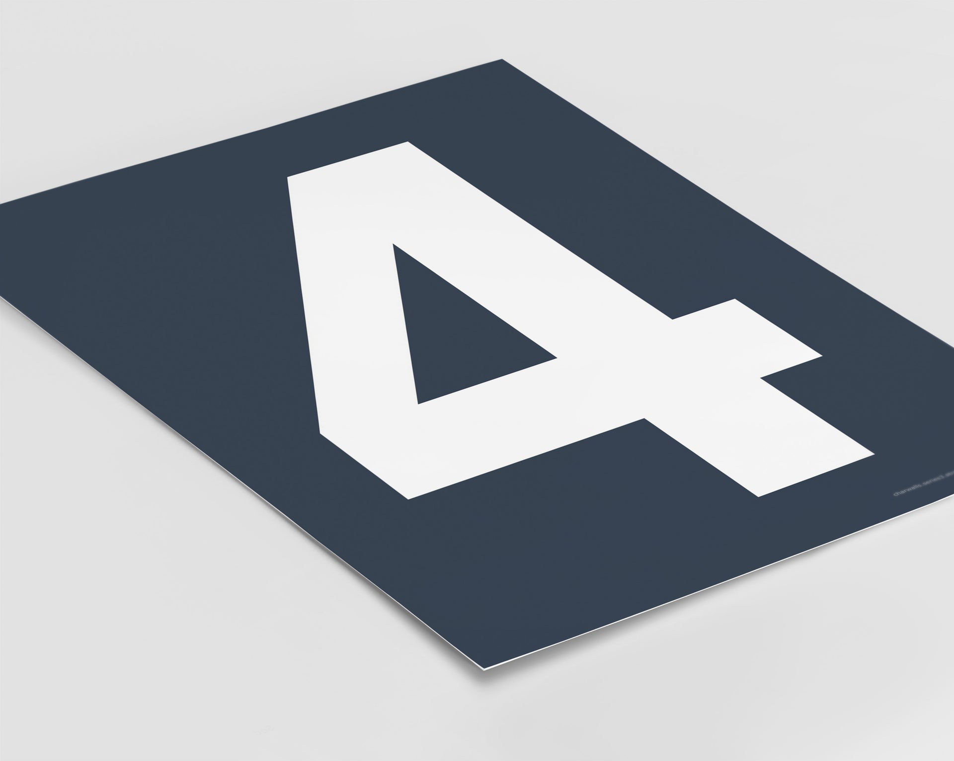Our Series 5 number prints feature white typography art on a navy blue background.
